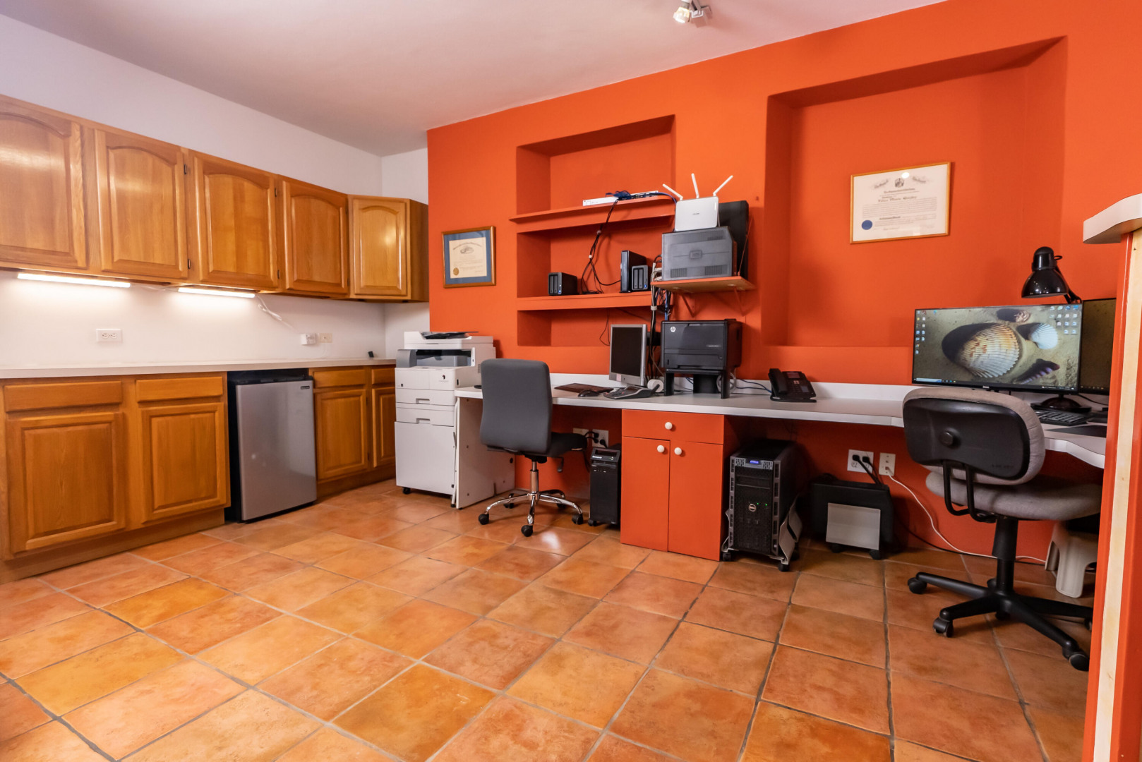 Two-story historic building rebuilt in 2002 with poured concrete, modern conveniences and construction, including impact resistant windows, and complete with high-quality materials all while keeping the historic integrity of the property. The property is fully gated with an automatic entry and exit gate and six parking spots. Prime location sitting on the corner of Prince Street and Company Street, a high-traffic location a few blocks from the seaplane, boardwalk and popular Strand Street. The lower level commercial space has an open reception area at the entrance, three offices, break station and full bathroom with a fully gated gallery that wraps around the front and side of the building. The upper level has soaring cathedral Cypress ceilings, a full kitchen, bathroom, three bedrooms