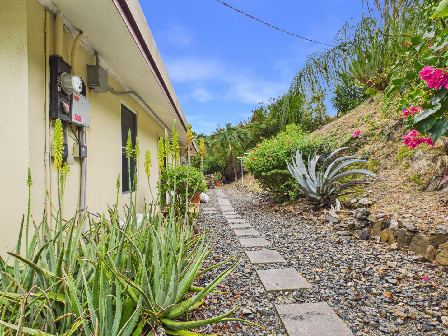 Experience the essence of Caribbean luxury in this beautifully appointed three-bedroom, two-bath pool villa. Designed to capture the island's natural beauty, this residence offers breathtaking sea views and a front-row panorama of the iconic Buck Island, creating an atmosphere of tranquility and sophistication. An inviting covered lanai and expansive deck surrounding the pool provide the perfect setting for outdoor entertaining, sunset cocktails, or quiet moments of relaxation amidst lush tropical landscaping. Sustainability meets comfort with solar panels, backup batteries, and a 7,500-watt generator, ensuring seamless living. Home qualifies for NET Metering. A private electronic gate opens to a spacious driveway with a large parking area and an additional storage building.