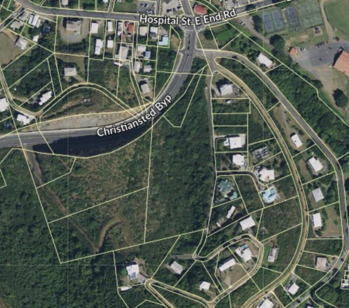 Large parcel abutting the bypass on one side and a neighborhood road in Recovery-Welcome on the other side. The gradual elevation leads to Caribbean Sea views including the Christainsted Harbor below. The by-pass location is ideal - centrally located near Gallows Bay and Christiansted town for dining, shopping, and all of your convivences, yet there is enough space and elevation to feel far away from it all. See supplement for full details of address and plots: