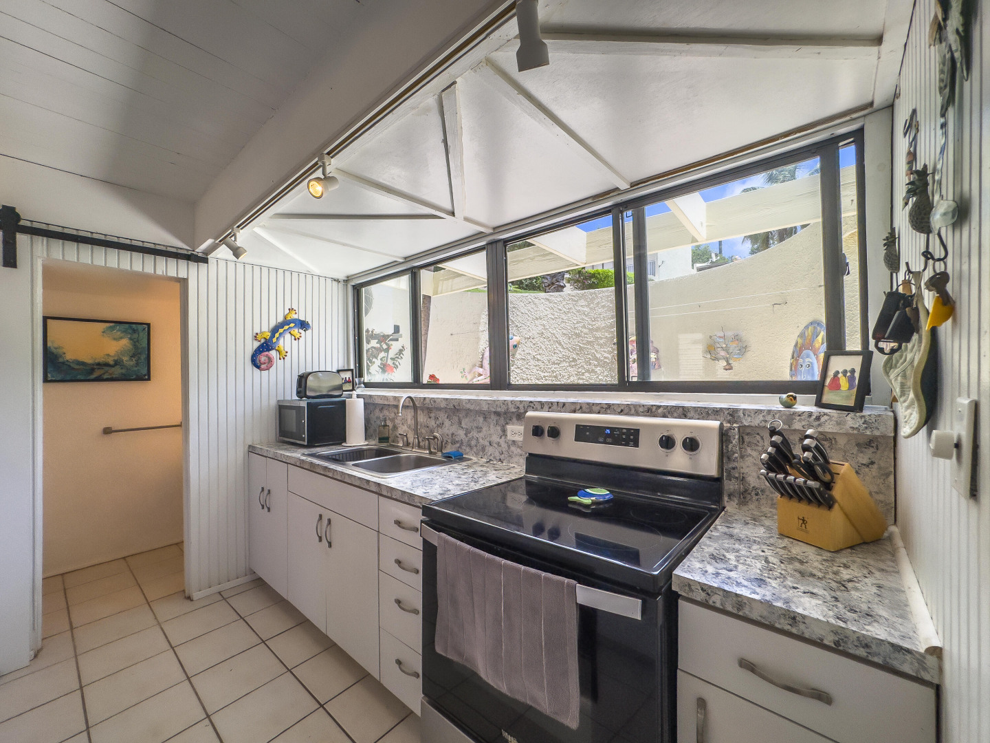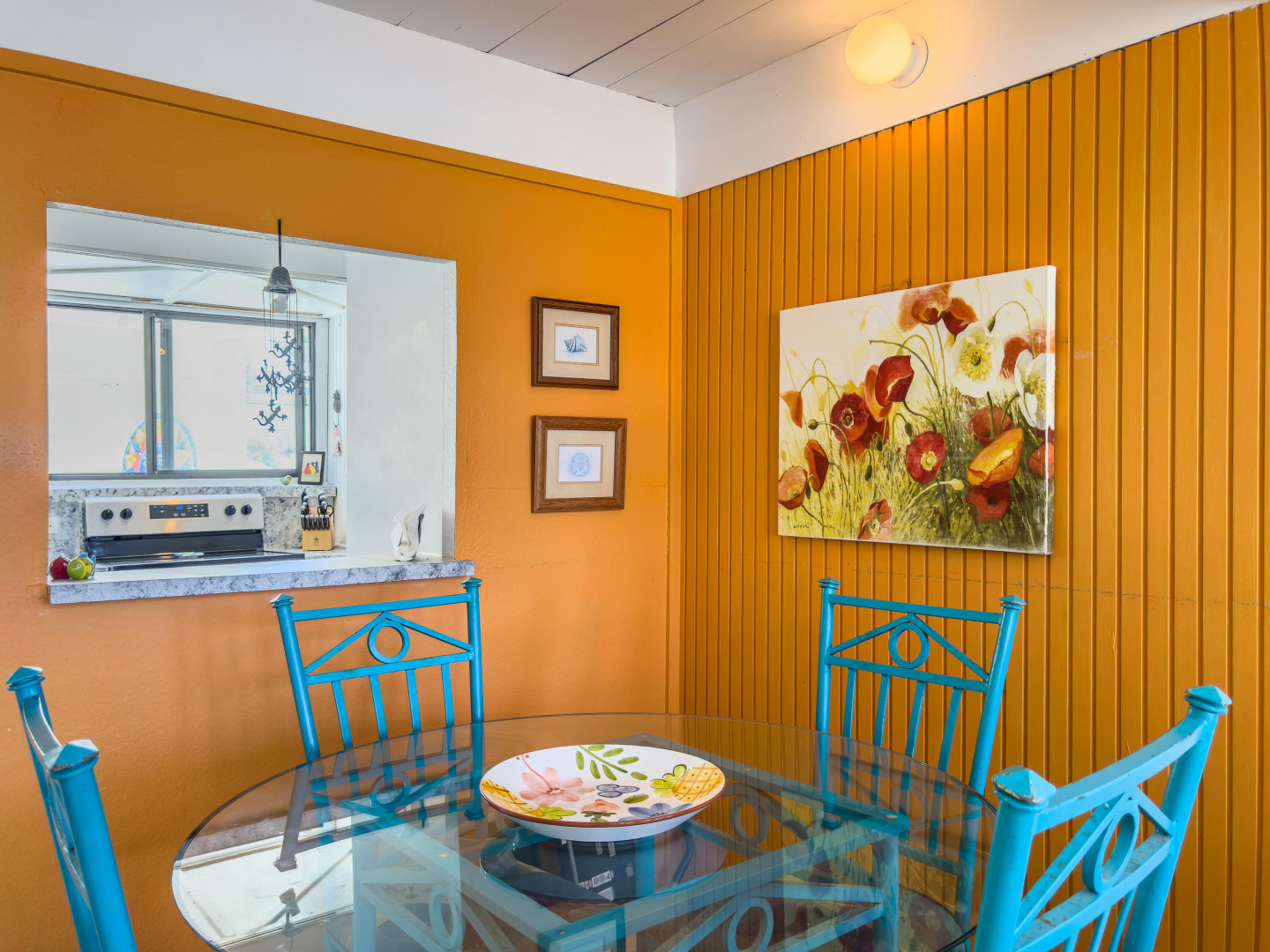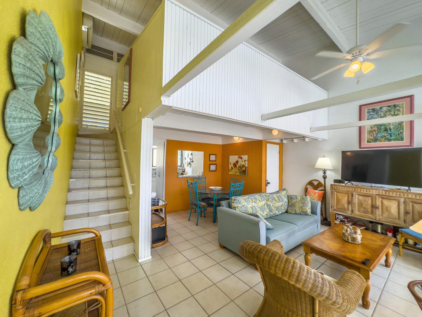 Welcome to The Reef! This stand alone unit features a roomy one bedroom loft with ensuite bathroom, and a bright living space that connects to a galley kitchen and half bath. You are sure to enjoy time on the private patio where you can dine, entertain guests, or simply relax and take in the beautiful surroundings and amazing view. Numerous activities are available right in the community and include a 9 hole golf course, driving range, disc golf, pickleball, tennis courts, knoll top community pool with breathtaking views, and beach access across the street. The Reef has an on site cafe, reverse osmosis water plant, gated access, and night time security. This amazing unit has been family owned and loved for over 15 years, and would make a great vacation home or investment property.