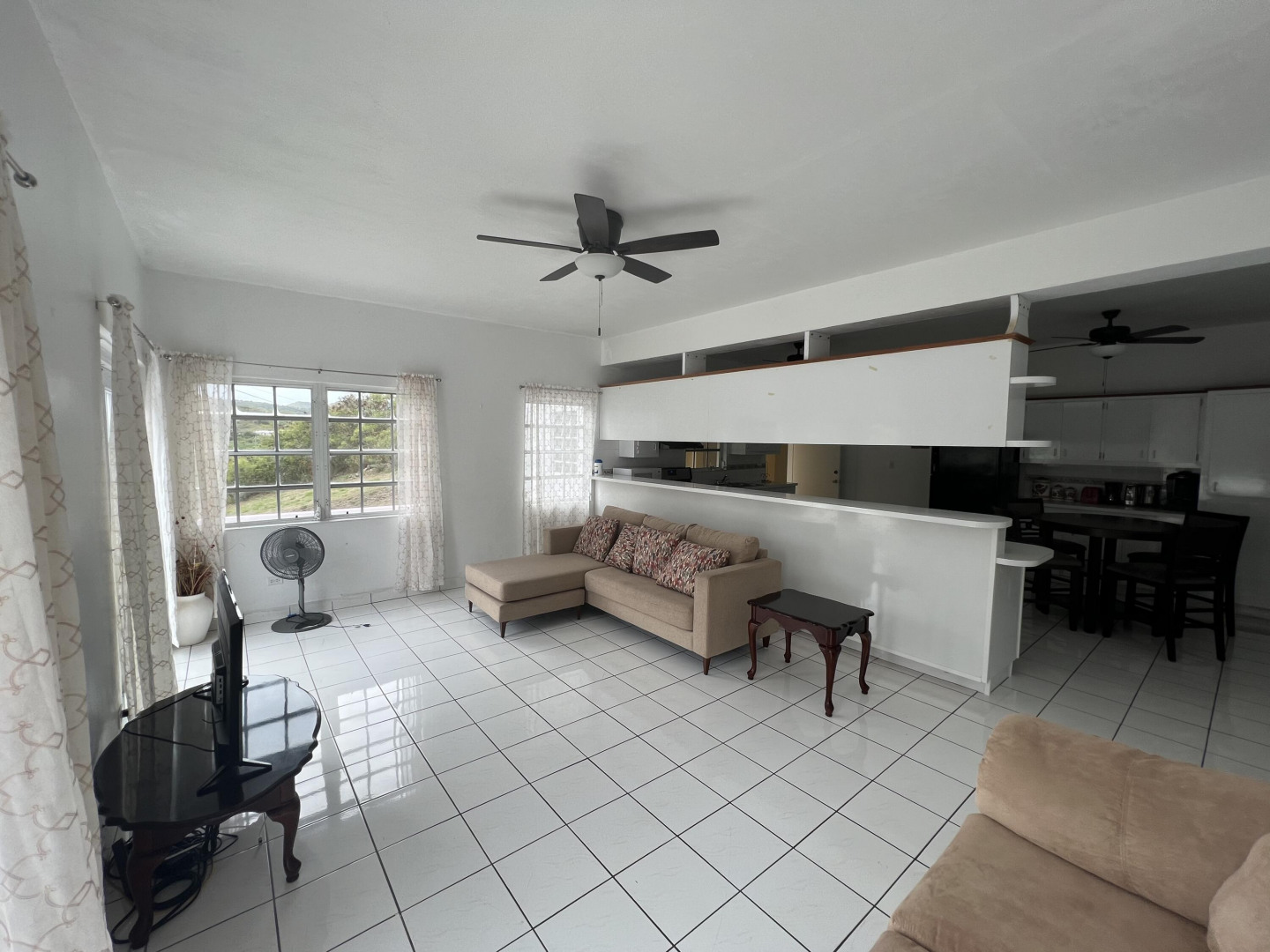 Spacious 2 bedroom apartment located on the second floor within a quiet neighborhood. Bathrooms are newly remodeled. Property comes furnished. A/C units throughout as well as additional interior storage units. Tenant is responsible for electric. Water comes from cistern and trash pickup is on sight. Conveniently located just five minutes east of Christiansted, close to beaches and restaurants. Minutes from the Buccaneer Resort and Chenay Bay. Plenty of parking available. Small pets considered.