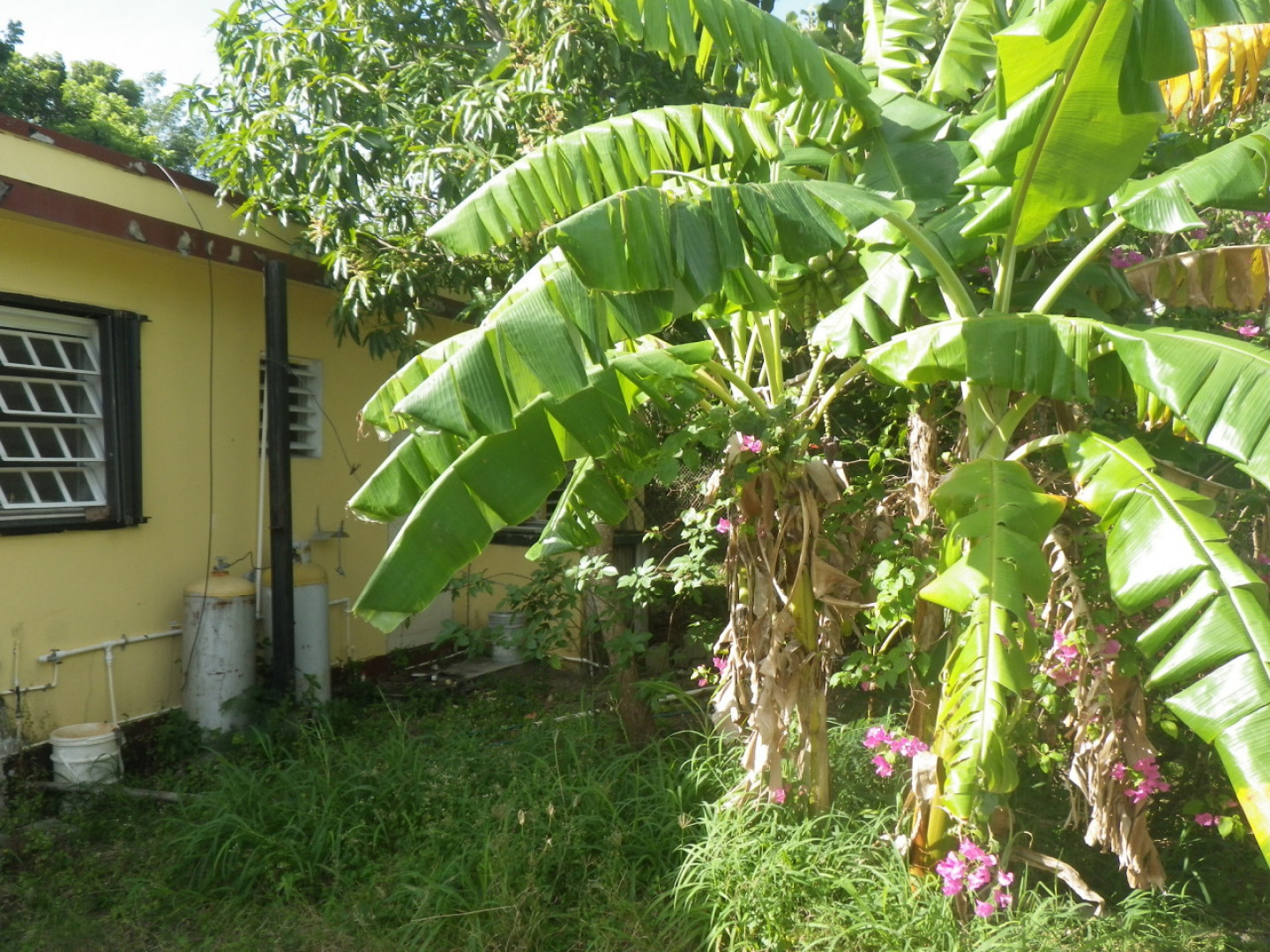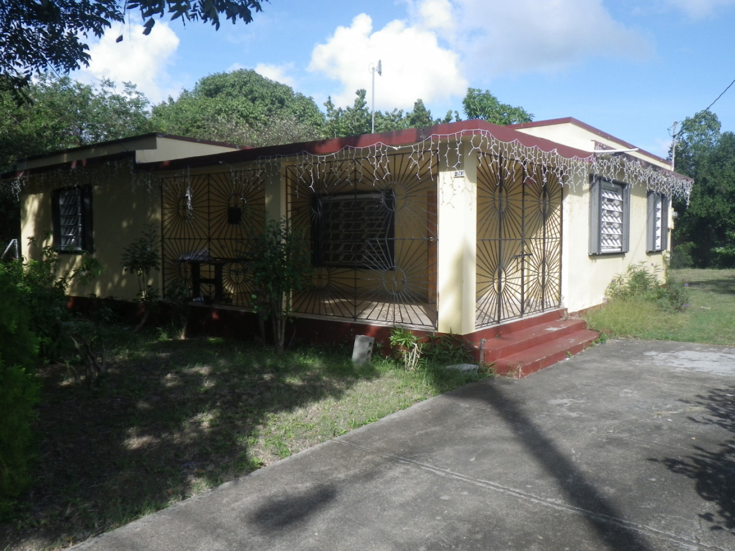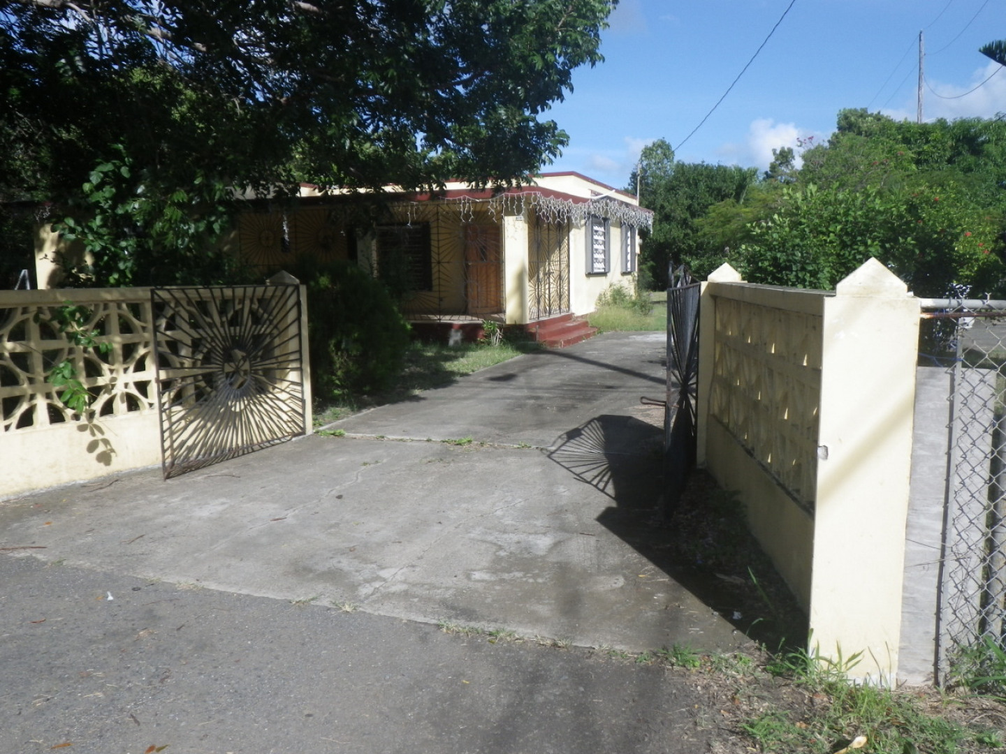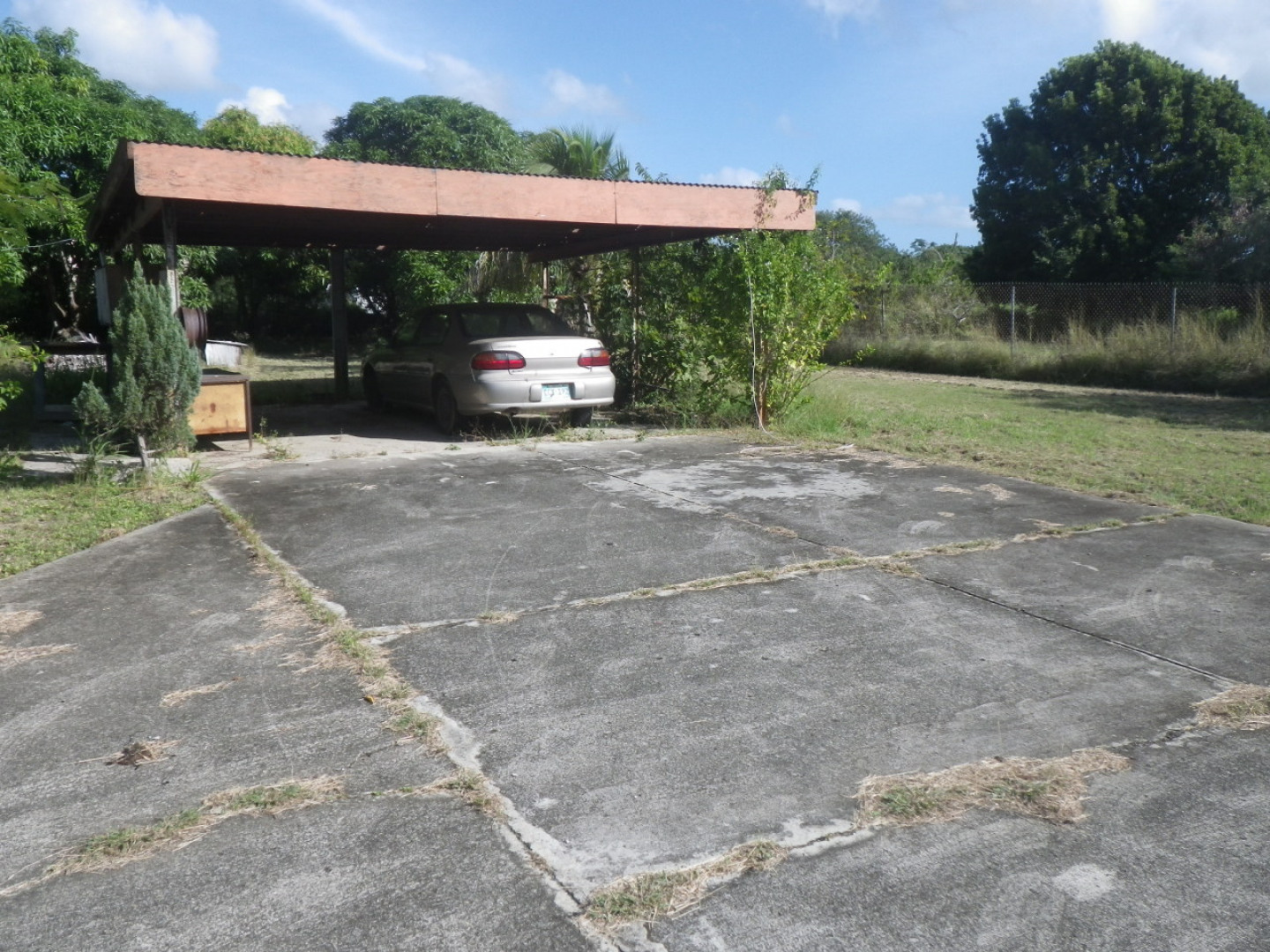 **AFFORDABLE**. Fixer-upper. Level, gated and fenced large 1/2 acre. The 1,129 sf main house is certainly habitable 'as is' but needs some attention. The 475 sf detached structure needs repairs (perfect for workshop). Big paved parking w/ large carport. WELL on site for GARDENING. FRUIT BEARING TREES. Additional potable and cistern water supply. Storm Shutters.