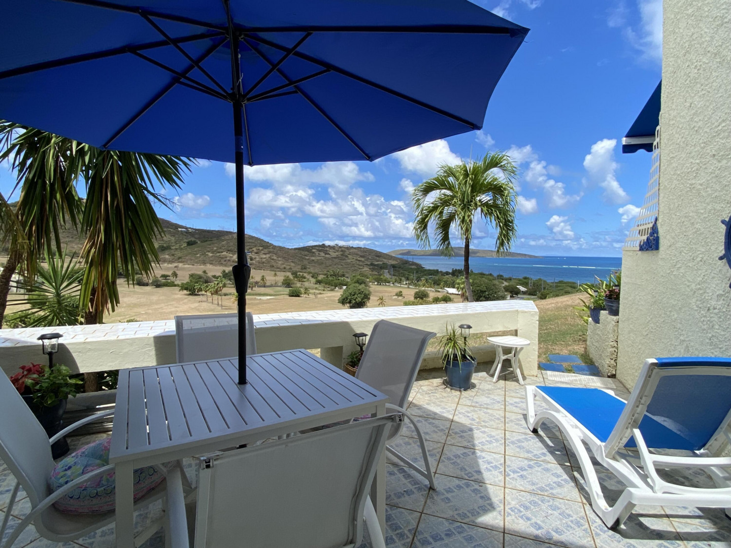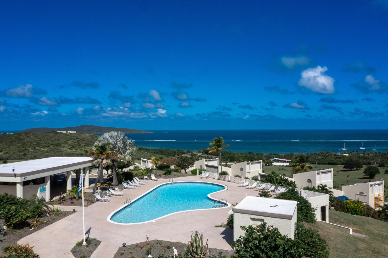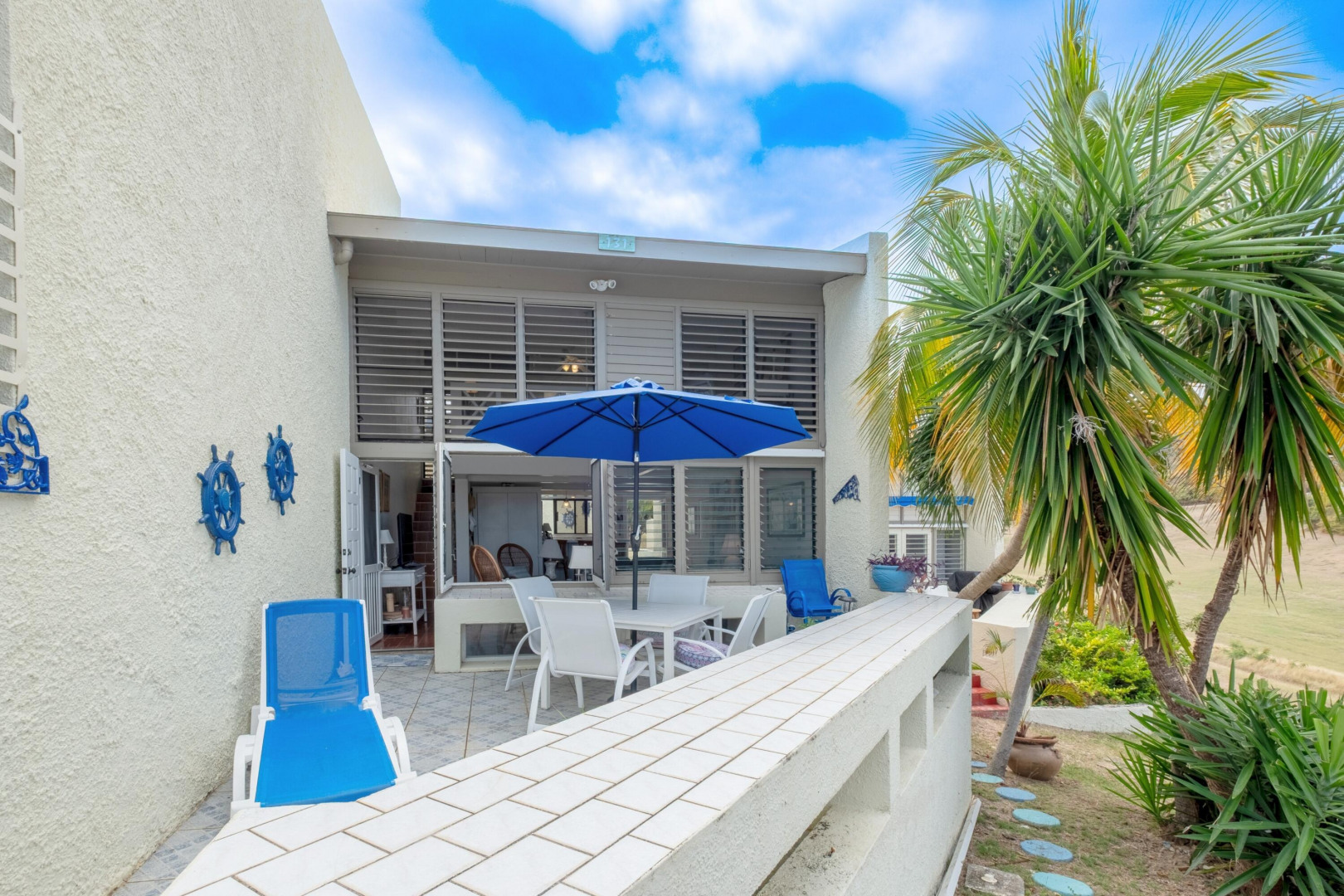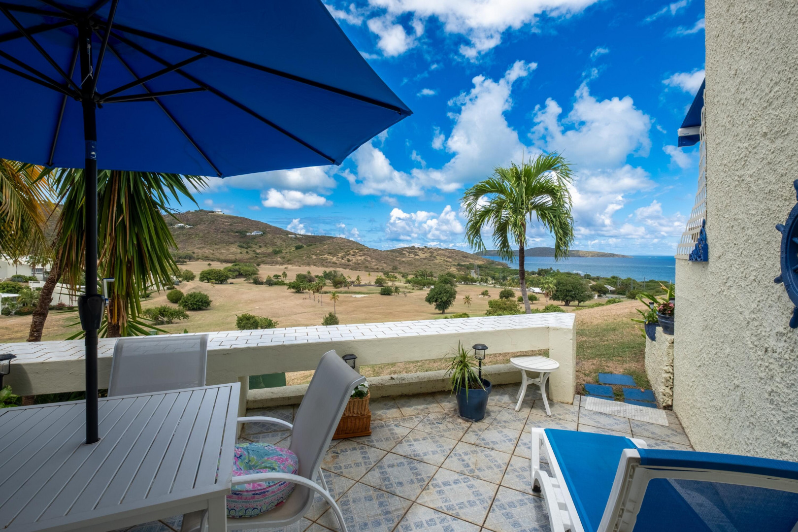 Island living doesn't get better than owning at The Reef. Now available is this perfect golf course level 1-bedroom unit, 1.5 baths with spectacular, undisturbed views of the beautiful sights of the Caribbean Sea and Buck Island. It is fully furnished and appointed in delightful island hues, with a bright updated kitchen and renovated bathrooms. This light-filled unit boasts 2 sofa beds for guests, skylights in the bathrooms, an extended bedroom, and an alfresco shower in the atrium for after the beach! Uniquely, this unit has the desired location with a private entry, a very private patio, and a green space between the neighboring unit. Reef living includes gated entry, sandy beach, terrific pool, 9-hole golf, tennis & pickleball courts, on-site office, coffee shop, and great restaurant!