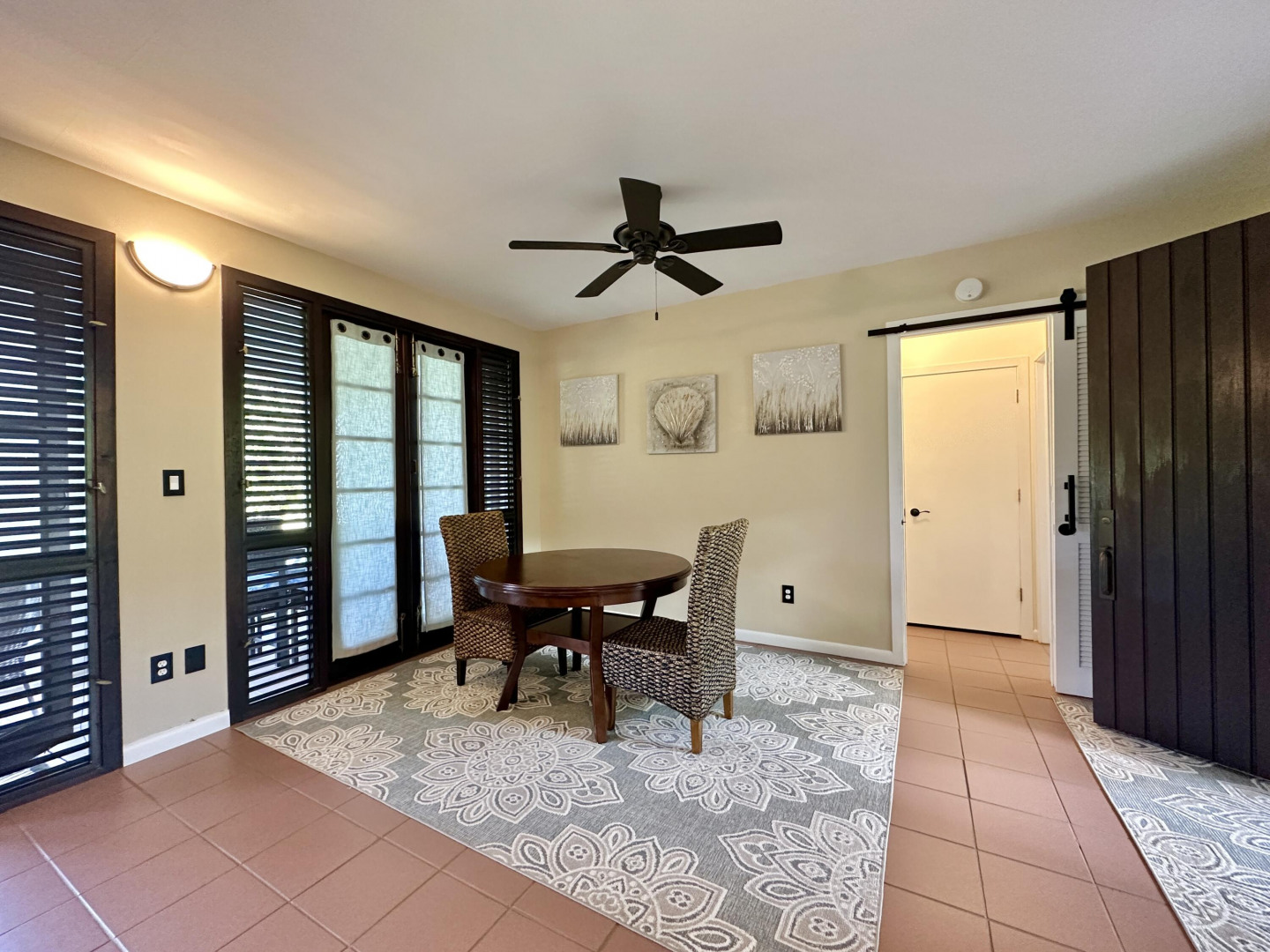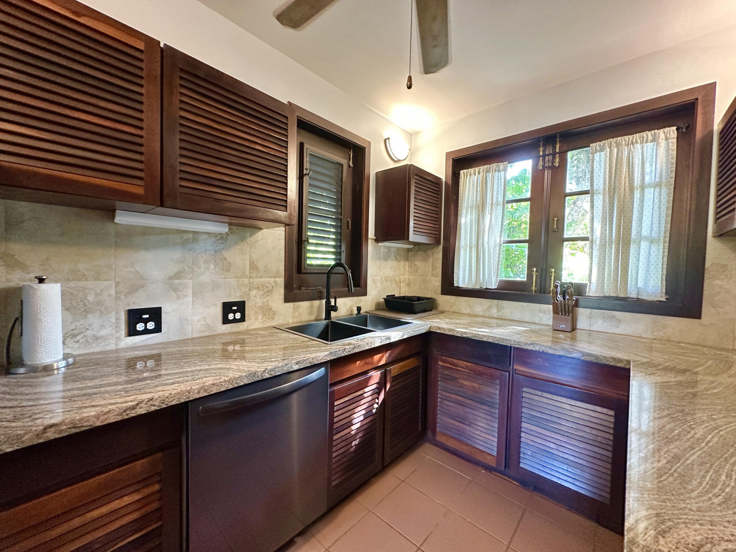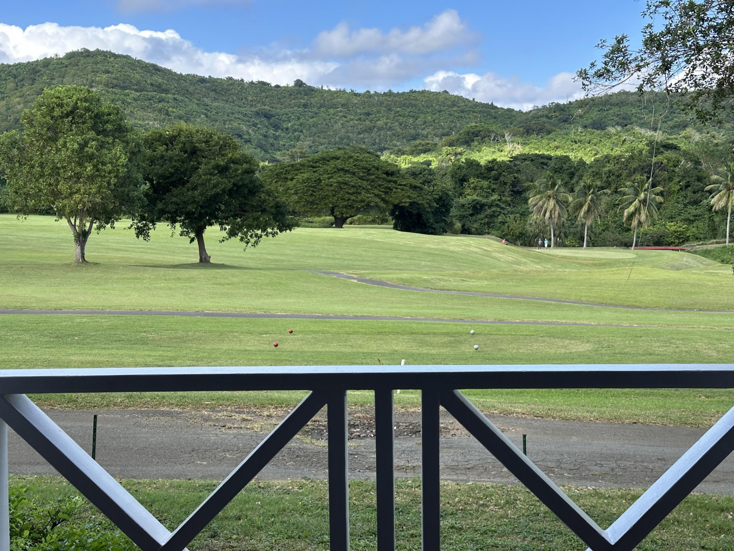 Impeccably maintained, quiet seclusion in a 1st floor villa on the Robert Trent Jones designed Carambola Golf Course. This beautiful 2 bed, 2 bath unit has refinished mahogany cabinetry with granite countertops, is tastefully furnished, and has all new appliances (2023). High ceilings welcome fabulous cooling breezes, with A/C in the bedrooms. Large dining and living areas open to two galleries. Relax or dine al fresco on the fabulous large gallery facing the tee boxes for the 9th hole of the golf course. Fire up the grill or hide away with a good book and a cup of coffee on the smaller gallery on the front of the building, secluded by tropical foliage. Amenities include 2 pools, tennis and pickleball courts and manned guard gate. More info at http://www.samanvillasatcarambola.com