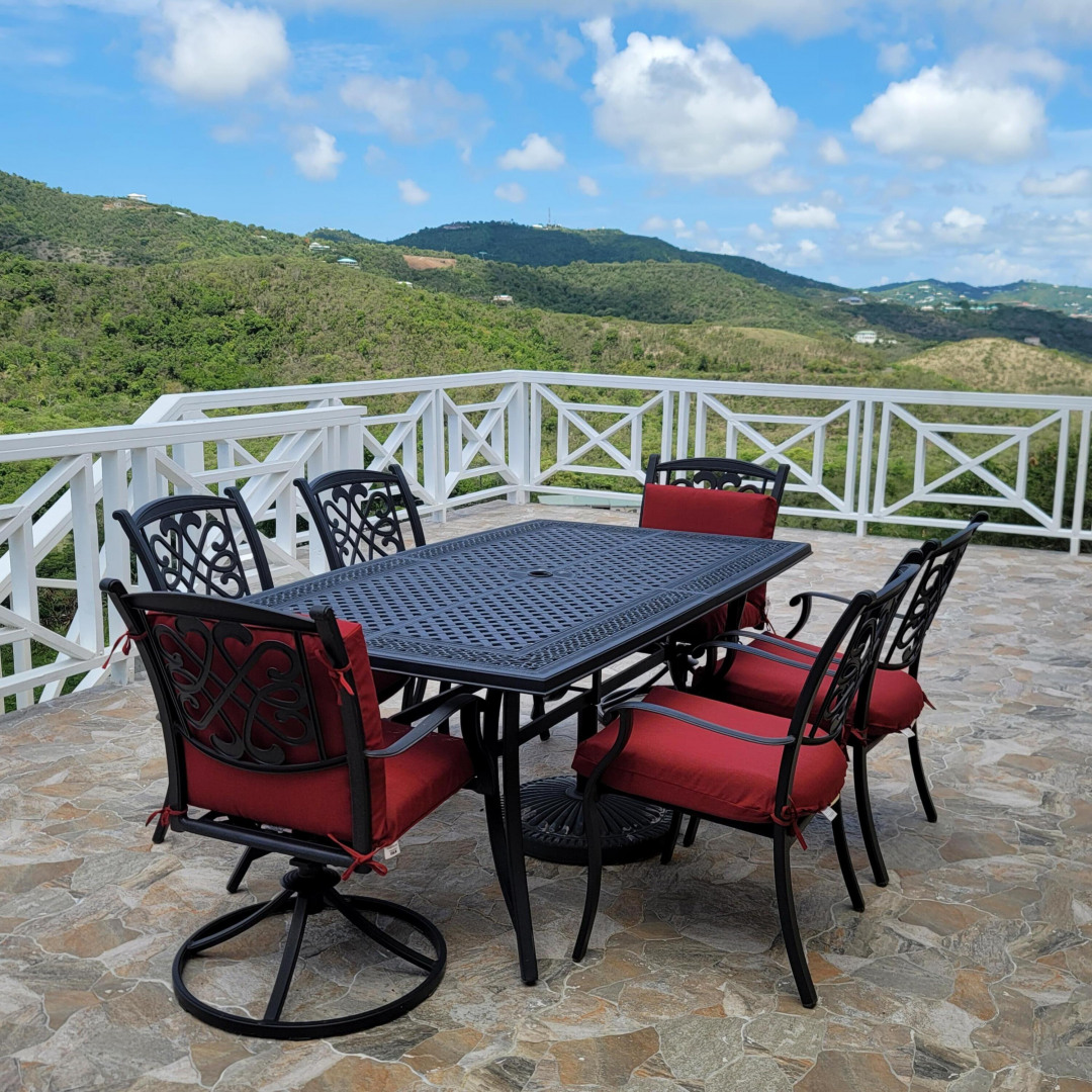 This Beauty sits high on the hills with stunning sea view. Huge patio with view of Christiansted town. Great for entertaining. Enjoy the open floor plan, with a beautiful kitchen, nice large living room and dining. Two bedrooms one bath. Fully furnished with washer/dryer , Ac in bedrooms.