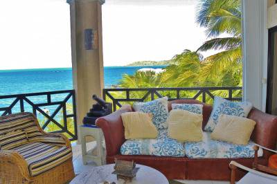 This sweet condo (which was featured on HGTV's Caribbean Life) could be your ideal winter getaway! Large 1-bedroom, 2-bath 2nd floor unit with spacious great room, cathedral ceilings, inside gallery could be a home office or space for guests. (Need more space? Easily convert this unit back to a 2BR by putting back up the wall and door!) 24K BTU split A/C in the great room keeps it nice and cool, additional split A/C in BR, ceiling fans, W/D in unit. The upper level offers views across the lush landscaped grounds & pool surrounded by ruins to the sea. Gated complex on the East End, convenient to downtown Christiansted, The Buccaneer Hotel, Shoys Beach