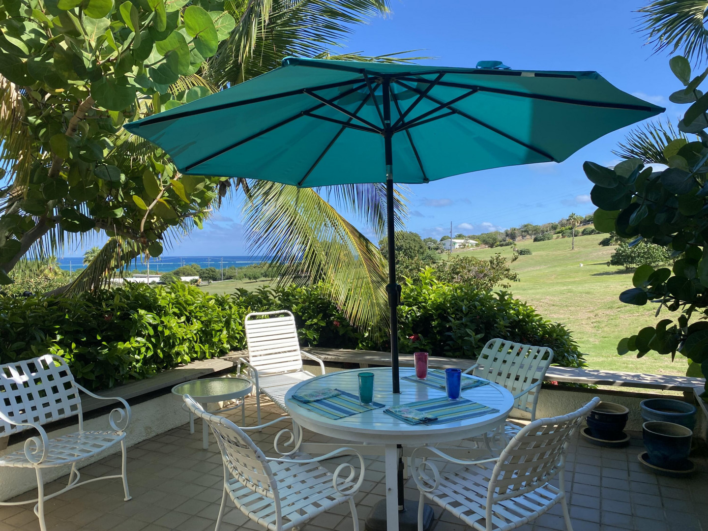 Here it is! The much sought after golf course level, stand-alone unit at The Reef! Enjoy island living in this tropical and breezy 1500 sq foot 2-bedroom, 2-bath unit. Offered fully furnished, this condo has been beautifully maintained. The upgraded aluminum windows highlight the brilliant Caribbean Sea colors, and the delightful private patio is ideal in the day or for night star gazing. The open concept living area with its high ceiling merges seamlessly with the custom kitchen that has loads of storage and counterspace plus a pass-thru window to the delightful atrium. The spacious bedrooms have the same beautiful sea views, with bathrooms en-suite. The Reef has a 9-hole golf course, tennis and pickle ball courts, a secure gated entry, and a gorgeous hilltop pool with large pavilion.