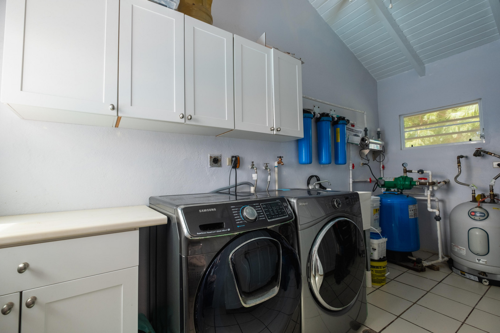 Beautiful 4-bedroom home in the gated beach community of Judith's Fancy, has been lovingly updated with new windows and doors, flooring, electrical panel, smart pool with new water-line tiles, and a fantastic large open kitchen boasting tons of storage and counterspace. Stainless steel appliances, large gas stove, pot filler, stainless farm sink, and so much more. The fourth bedroom is ideal as a mother-in-law suite, with its own breakfast refrigerator and sink. You will love the comfortable one-level living, the very private pool and close proximity to the beach for morning walks. This home is offered furnished and includes a 14KW propane generator and a ''Zero Turn'' Mower.
